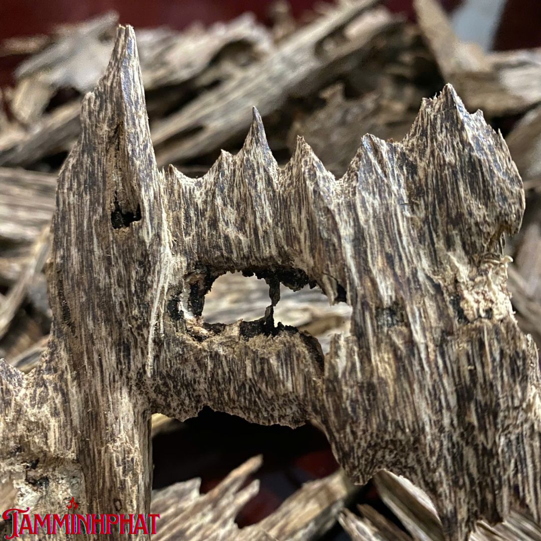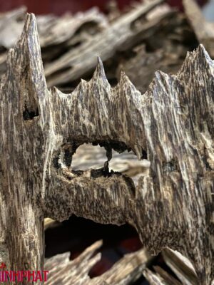 - Hình dạng “hang kiến” đặc trưng – minh chứng cho trầm hình thành tự nhiên.